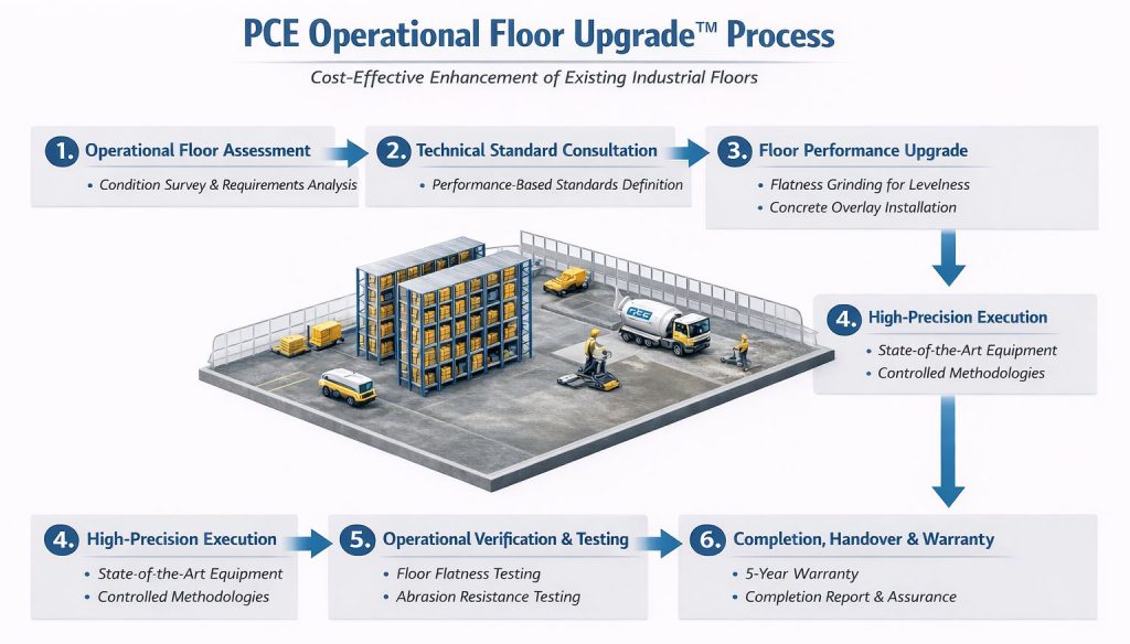 PCE Operational Floor Upgrade™ transforms underperforming floors into reliable operational assets, supporting productivity, safety, and future operational demands.